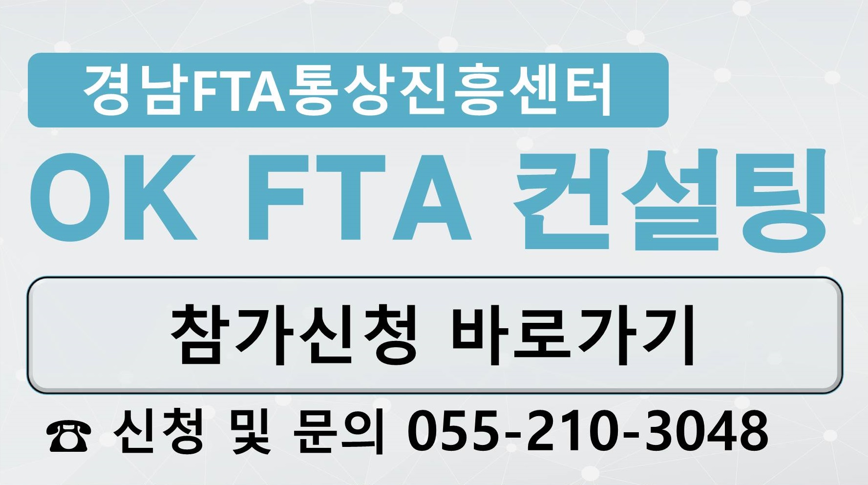 당신의 좋은 파트너, 경남FTA통상진흥센터 협력 지원 체계를 구축하여 교육, 상담 및 컨설팅 등 지역실정에 맞는 상시 FTA 대응 서비스를 지역 업체에 제공