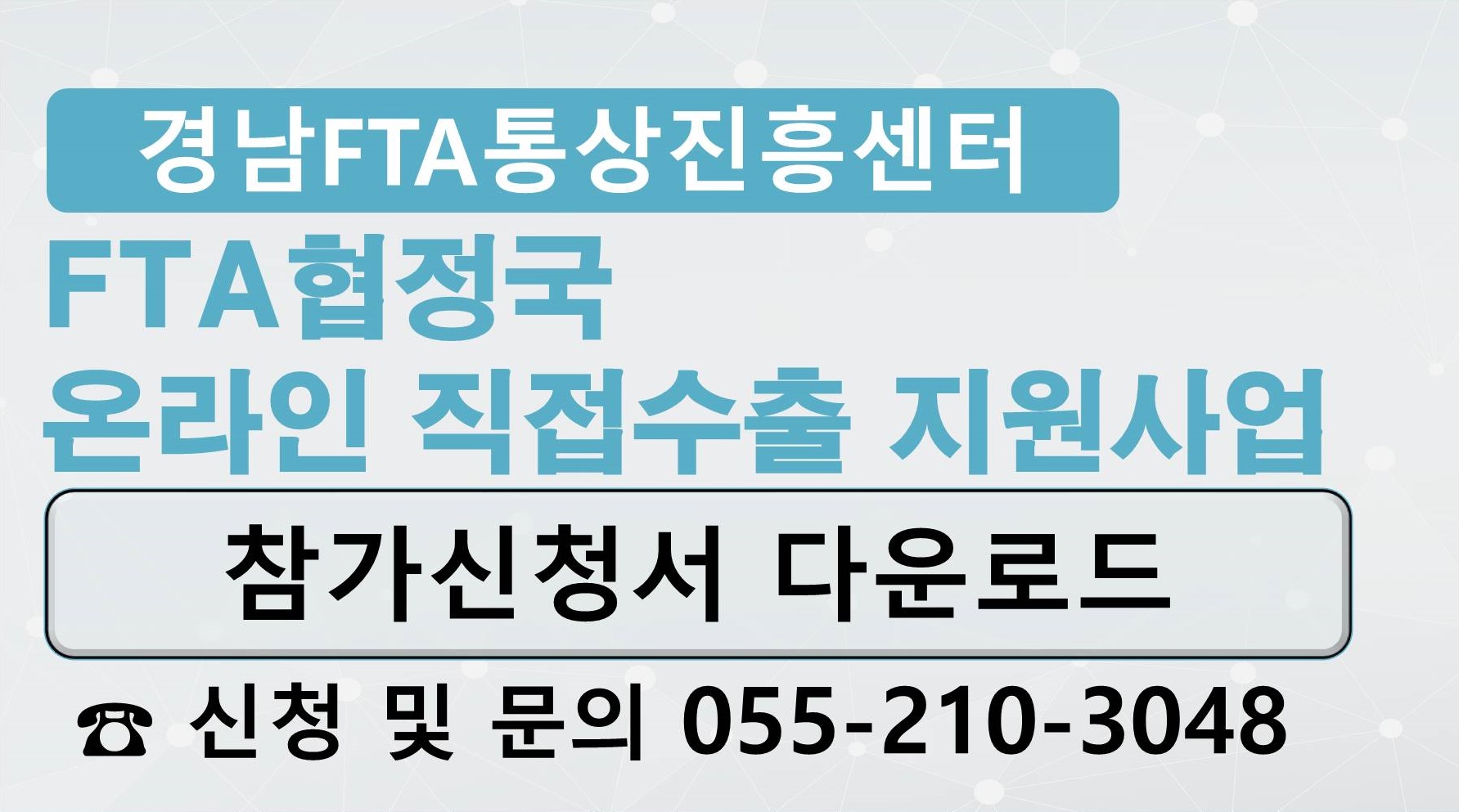 경남FTA통상진흥센터는 2011년 9월 2일자로 기획재정부로부터 공식 지정받아 다양한 사업을 추진하고 있습니다. 경남지역 기업들의 FTA원산지인증수출자 컨설팅, 교육, 설명회 등의 사업을 지원하면서 우리나라 무역 2조 달러 달성을 위해 많은 노력을 하고 있습니다.